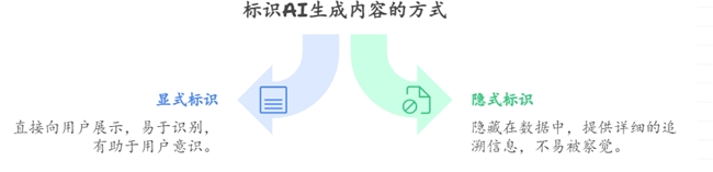●显式标识:以文字、声音、图形等直观方式呈现,让用户一眼就能辨别内容是否由AI生成;