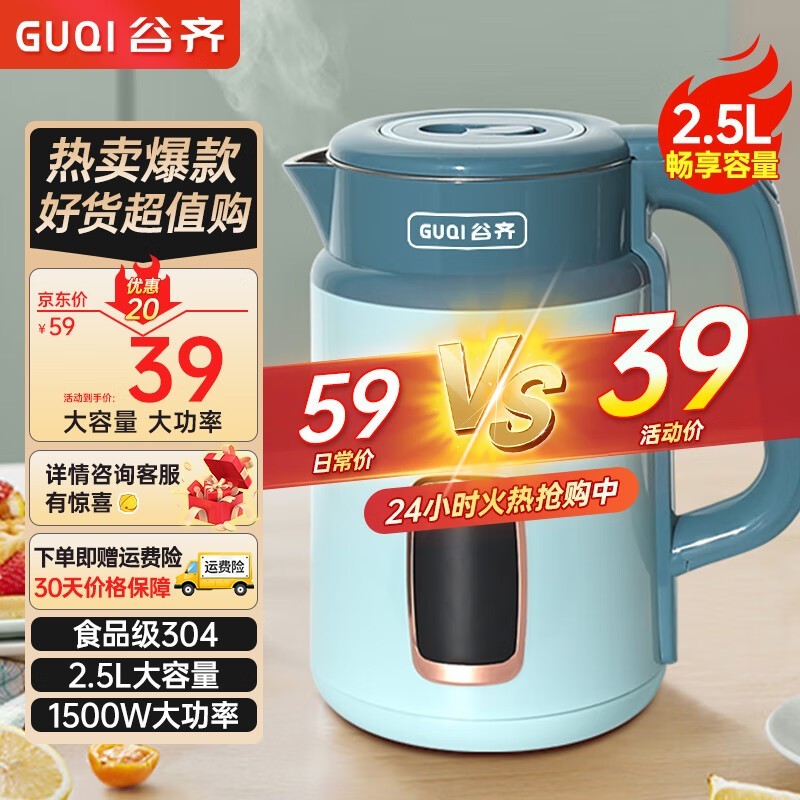 谷齐电热水壶2.5L大容量1500W京东活动价24元