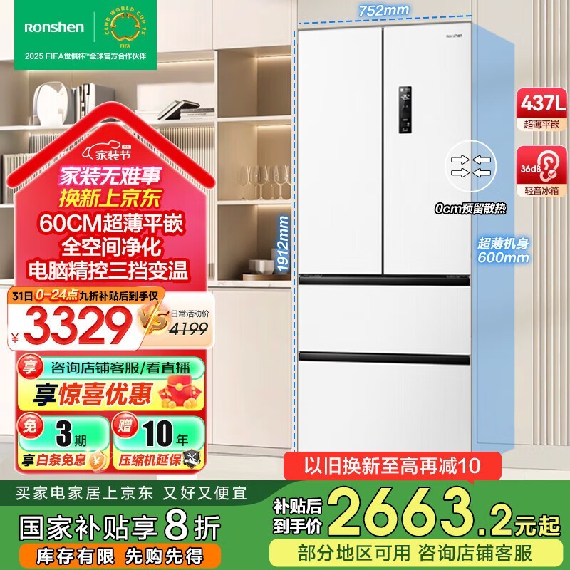 容声437升冰箱超值优惠,到手价2537元