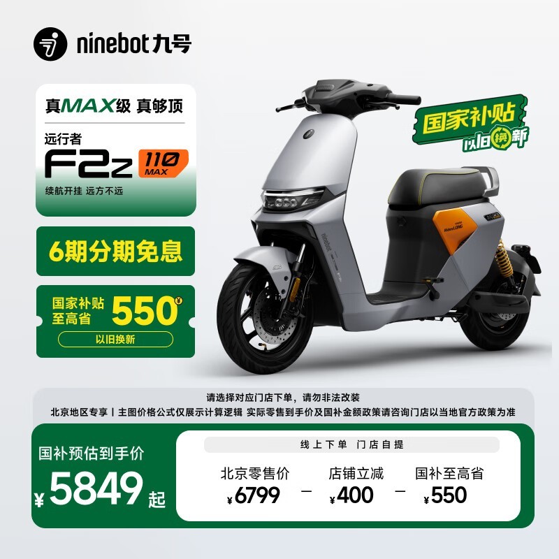 九号电动F2z 110 MAX京东优惠,北京到手5849