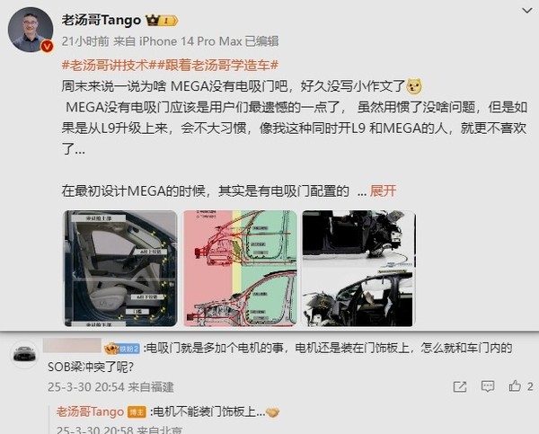 理想高管详解“MEGA为何没有电吸门”:最初有这项配置