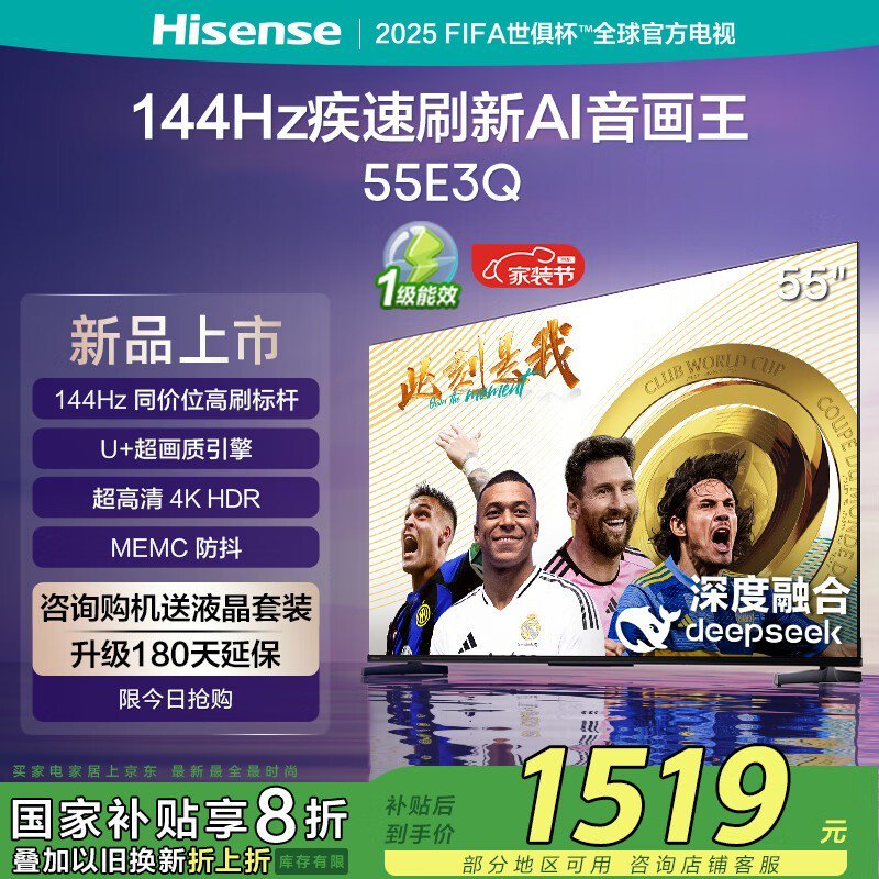 海信55E3Q Mini LED电视4K超高清京东特惠1361元