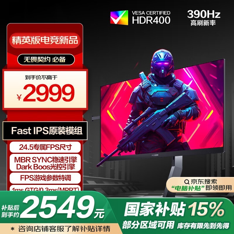 AGON爱攻AG256FS专业电竞显示器24.5英寸360Hz仅2899元