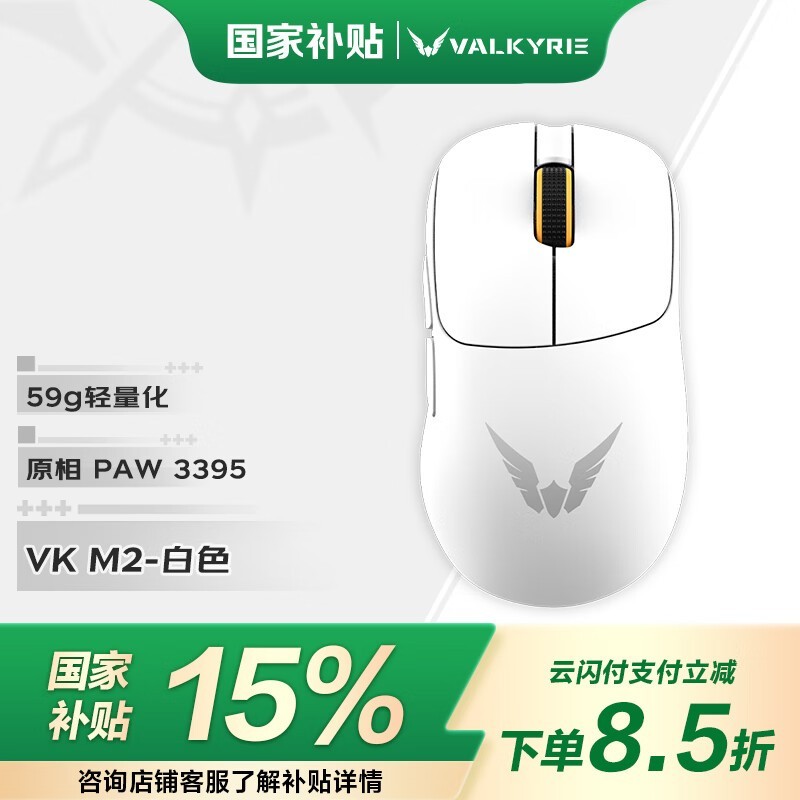 瓦尔基里VK M2三模鼠标白色121元可入手
