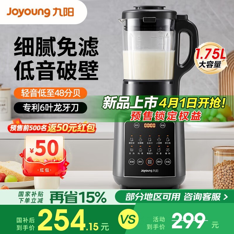 九阳破壁机家用免滤豆浆机1.75L容量营养又便捷