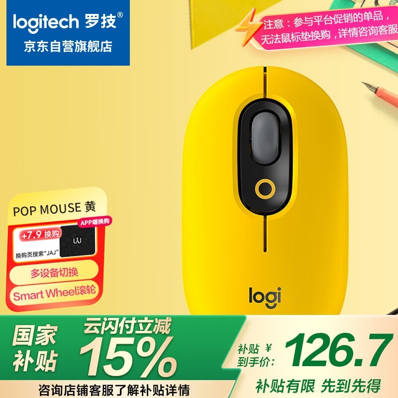 罗技POP MOUSE蓝牙鼠标时尚静音多重优惠到手126元