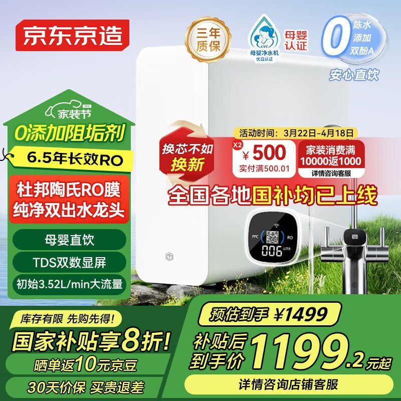 京东京造灵犀1000GPro2反渗透纯水机仅1199元