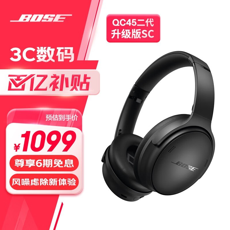 Bose QuietComfort 45二代主动降噪蓝牙耳机经典黑京东特惠