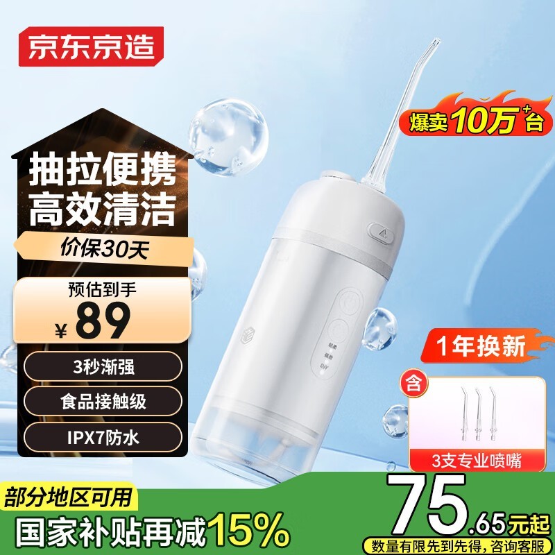 京东京造冲牙器JZCY-01A享国家补贴特惠仅75.56元