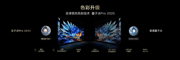 此外,TCL T7L Pro系列将XDR 1600nits升级为绚彩XDR 2200nits,TCL Q9L Pro系列将XDR 2400nits升级为绚彩XDR 4500nits,峰值亮度持续时间数倍延长,能够更好地显示真实世界的亮度效果。最新的量子点Pro 2025,则从量子点材料到色彩算法全面升维,让显示画面更真实地还原现实世界,真正做到十亿原色屏,十年好色彩。