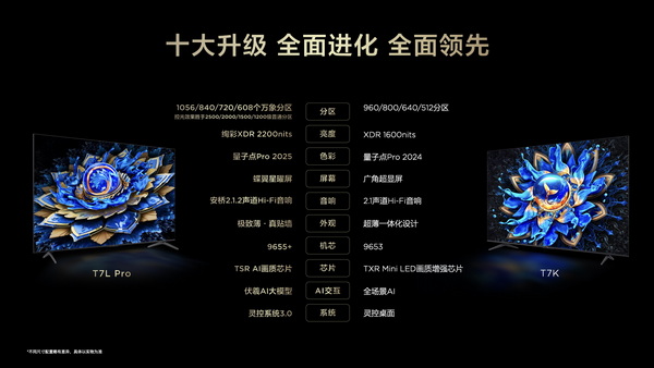 感受到网友们的热情,TCL也给出了积极回应。此次TCL两大系列Mini LED电视新品T7L、T7L Pro、Q9L和Q9L Pro正式揭开面纱,打造2025年最强QD-Mini LED新品阵容,在2025年的电视市场续写质价比传说,正式回复用户们一年的期待。