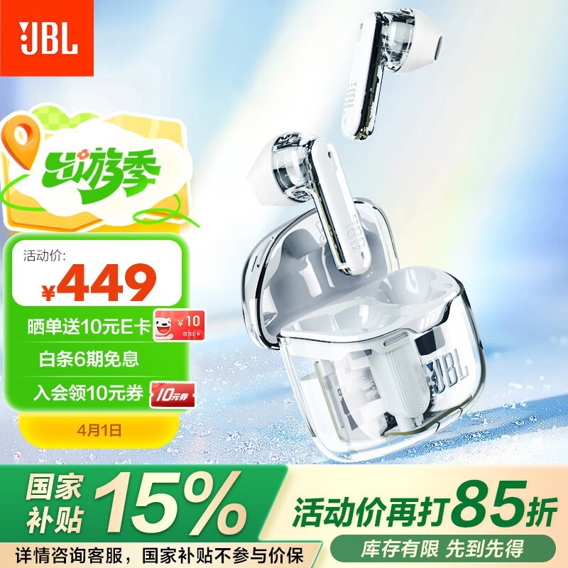 JBL TUNE FLEX白色蓝牙耳机仅需404元