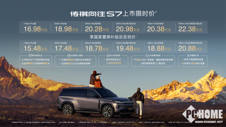 3月30日,广汽传祺在深圳坪山燕子湖国际会展中心举办了主题为“千里智行始于向往”的用户派对,正式推出旗下首款高阶智驾SUV传祺向往S7。新车以16.98万-22.38万元的限时售价切入市场,顶配Ultra四驱激光雷达版享受国家补贴后价格下探至20.88万元,同时推出Pro版车型补贴后售价15.48万元。