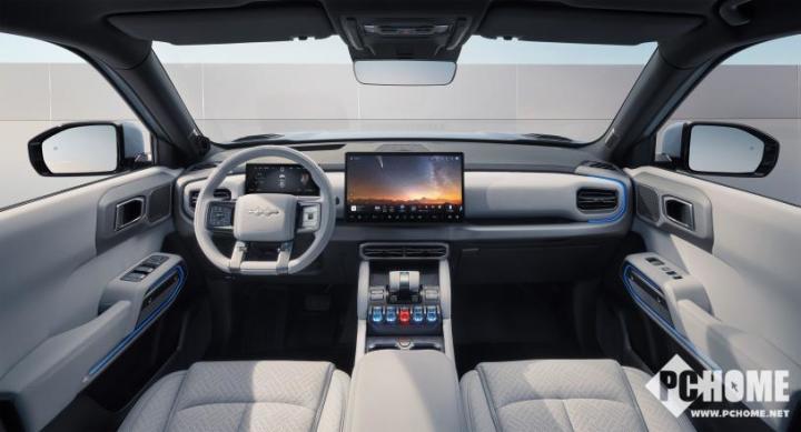 座舱内,飞翼式仪表台、C形星际氛围灯与豹系家族同款的“战车档把+水晶按键”,构建出极具科幻力的驾驶氛围;AI智能座舱与多功能灵动岛,支持语音交互、场景模式一键切换,15.6英寸中控屏、12英寸HUD与帝瓦雷音响,搭配人体工学座椅与冷暖冰箱,让每一程都沉浸于舒适与潮流乐趣中。