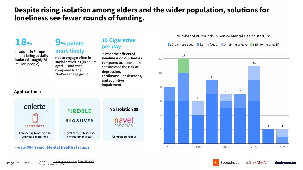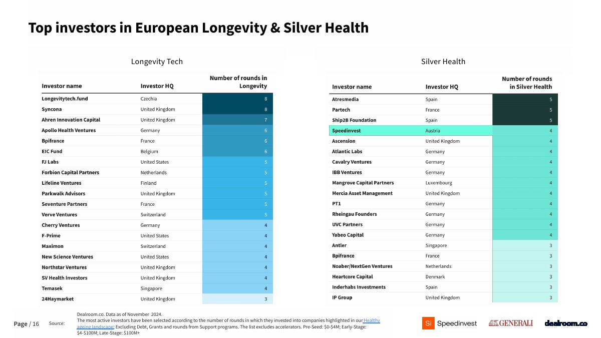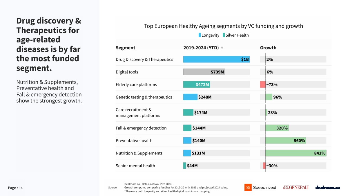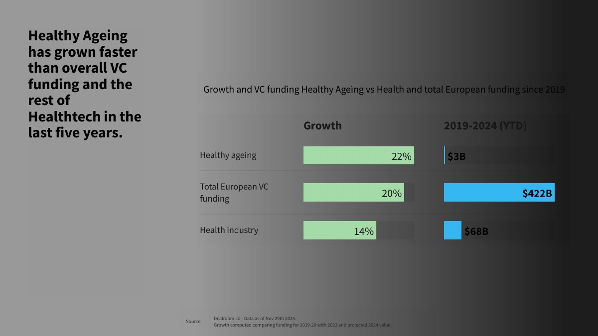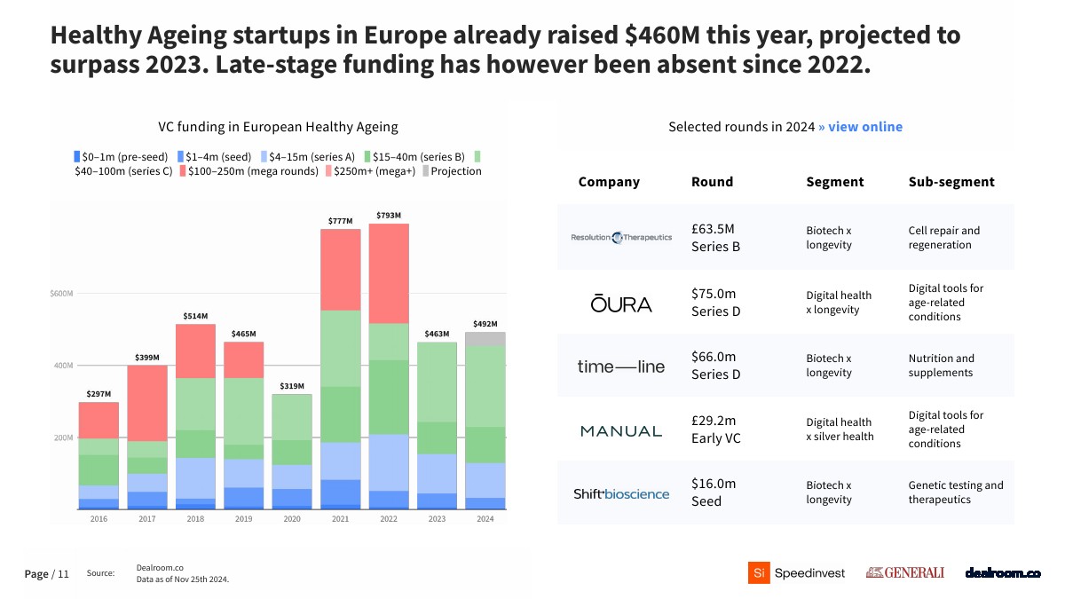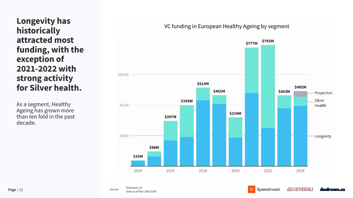 在老龄化领域,长寿公司历来吸引了最多的资金,除了2021-2022年,Silverhealth的活动非常活跃。