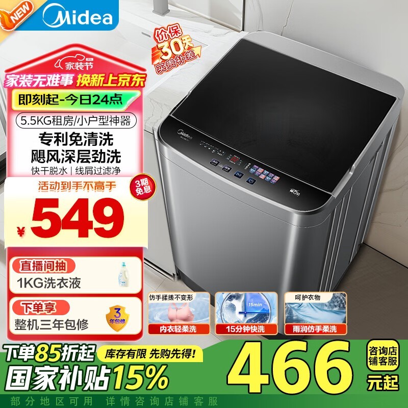 美的迷你洗衣机MB55V36E免清洗5.5kg家用租房宿舍用京东促销