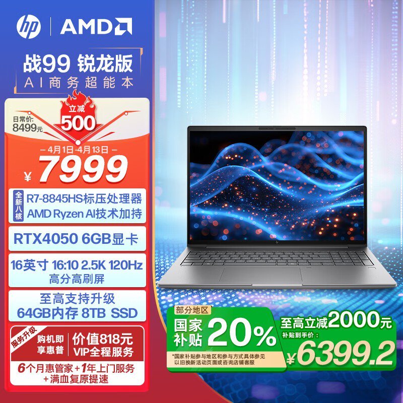 惠普战99超能本16英寸灰R7-8845HS RTX4050 32G 1TB SSD