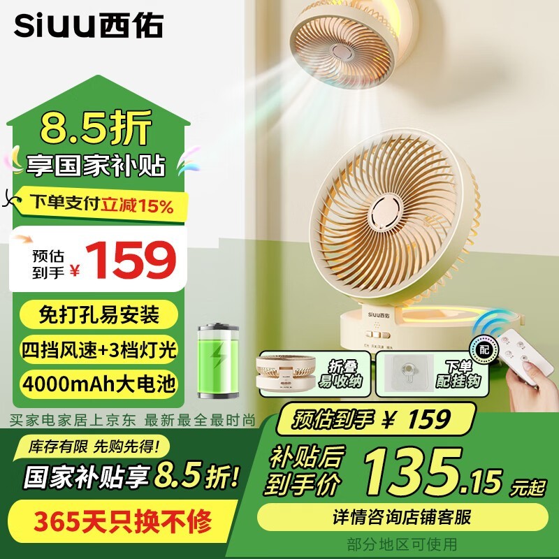 西佑SIUU壁挂电风扇超值价82.11元快来抢