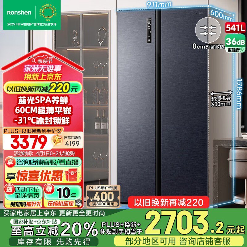 容声541升对开门冰箱一级能效变频风冷无霜节能静音
