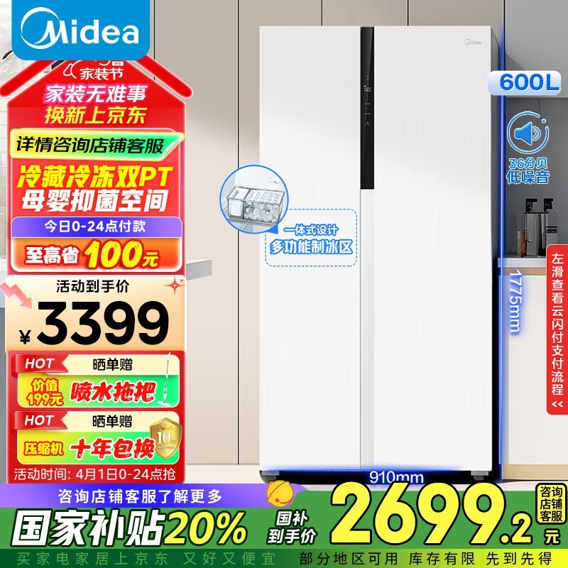 美的630MR-630WKPZE冰箱仅需2546元
