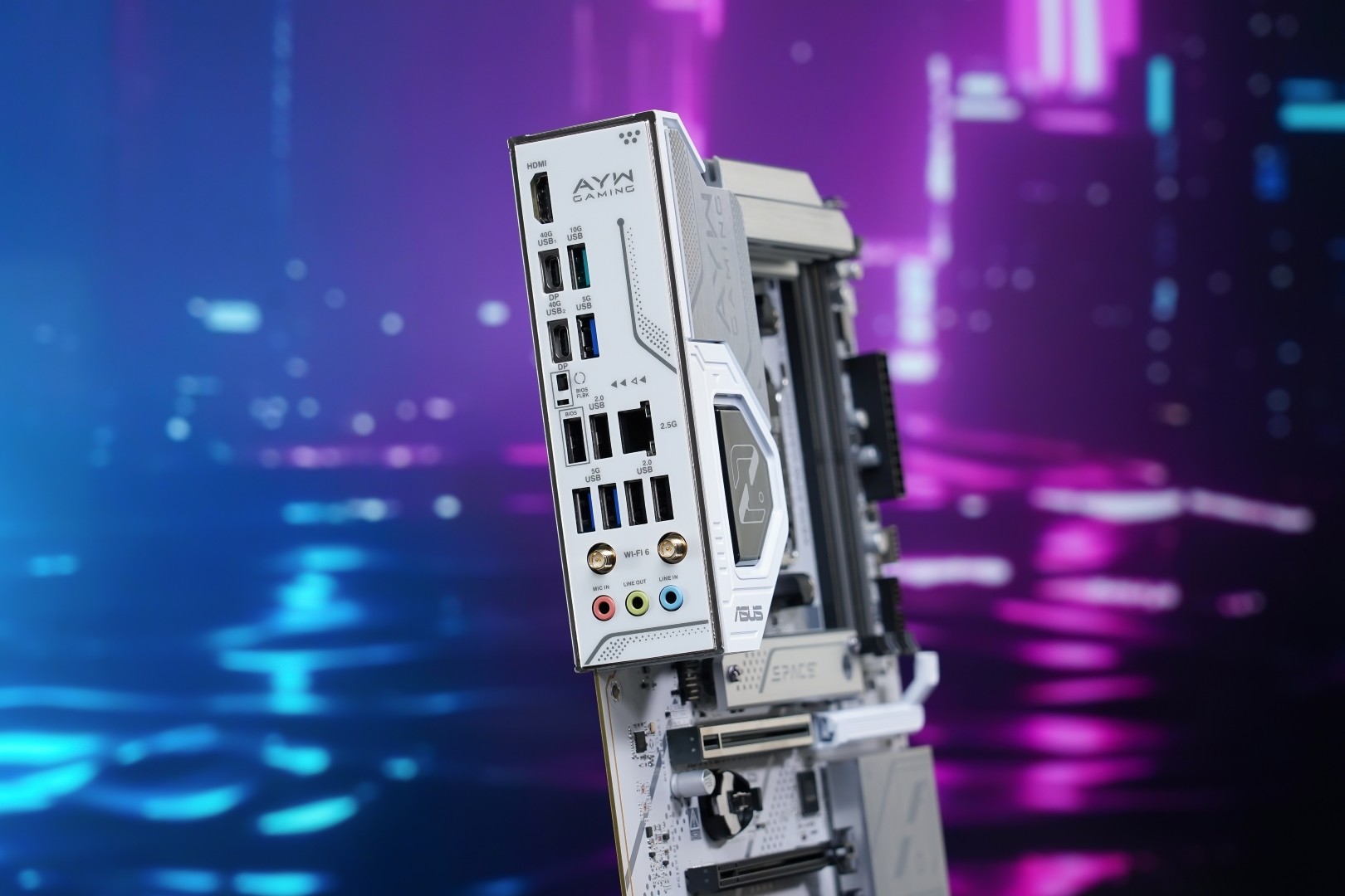 华硕X870AYW GAMING WIFI W主板预装一体化银白I/O背板,板载双USB4接口,提供40Gbps高速传输。前置USBType-C接口传输速度高达20Gbps,且支持30WPD 3.0快充,便于玩家玩游戏时也可为连接移动设备(手机、平板电脑等)快速充电。