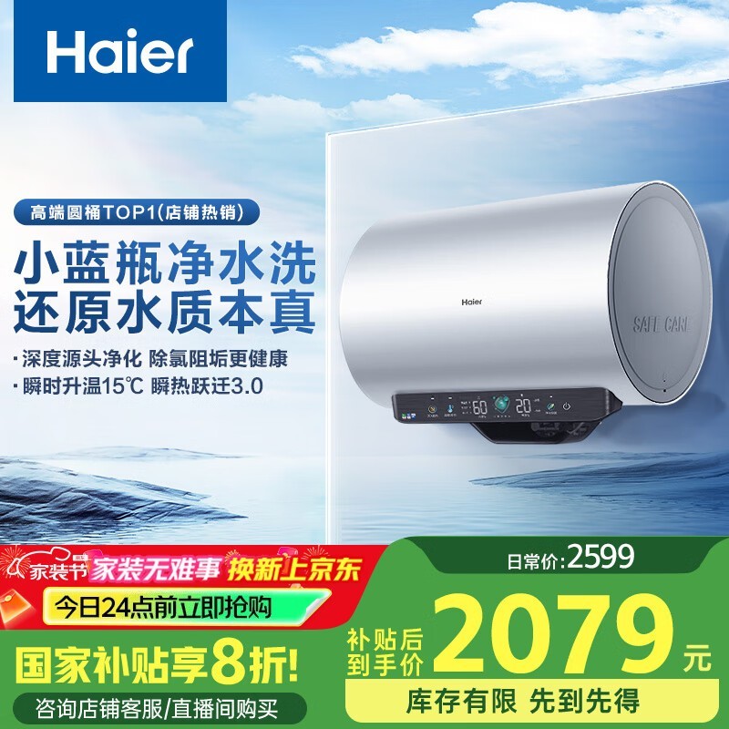 海尔80升电热水器3300W速热一级能效好价1985.88