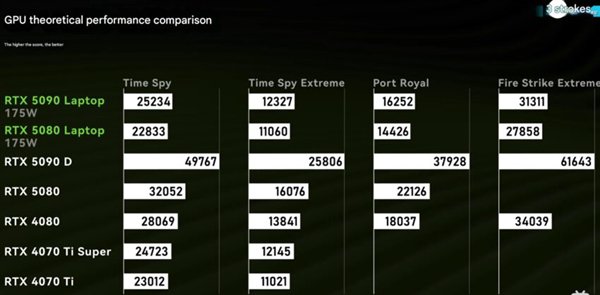 Notebookcheck指出,而且对于笔记本游戏玩家来说,可能需要调整期望,因为移动版RTX 5090在性能上比桌面版低于约50%。