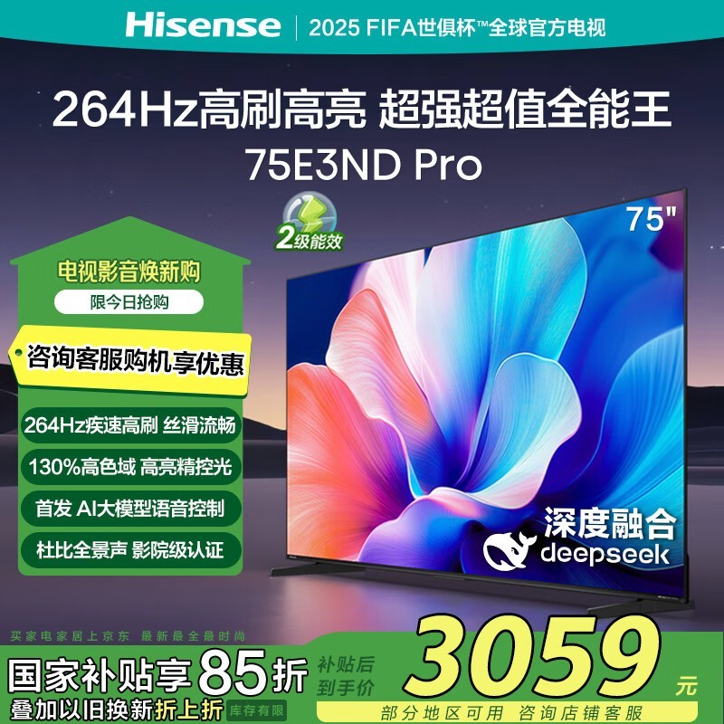 海信75E3ND Pro 75英寸4K电视京东优惠价3046元