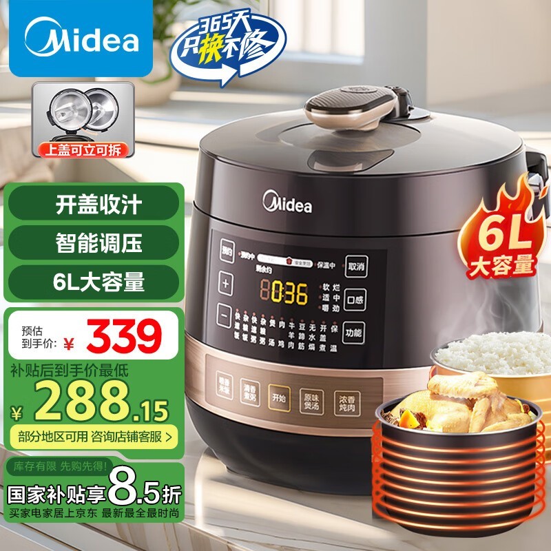 美的MY-YL60Easy203电压力锅6L大容量一锅双胆菜饭分开煮