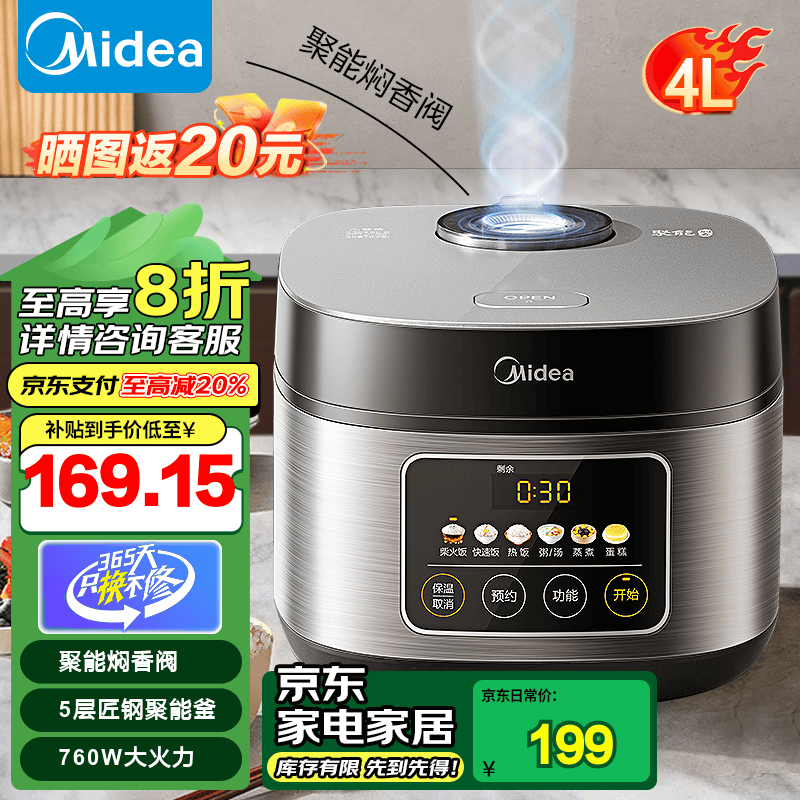 美的智能电饭锅4L型号MB-RE416超值优惠活动