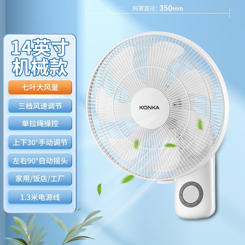 康佳电风扇壁扇简约实用壁挂式风扇仅20.5元