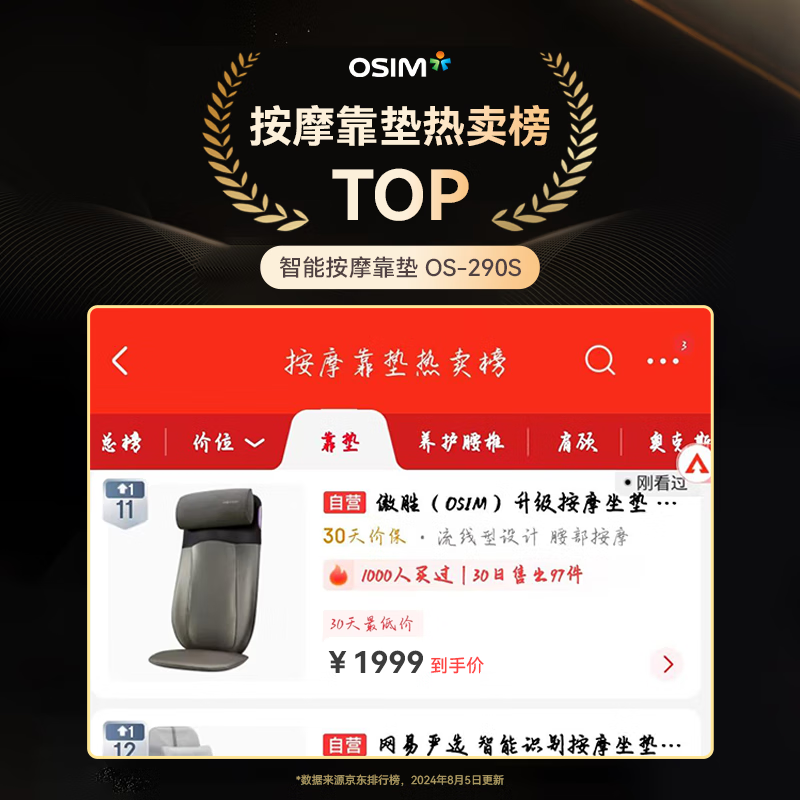 傲胜OS-290智能按摩坐垫舒适升级享好价
