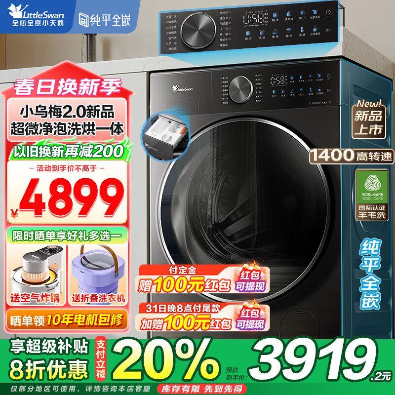小天鹅小乌梅2.0洗衣机,原价4899现3411.6