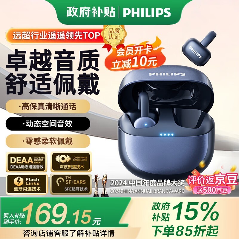 飞利浦蓝牙耳机采用耳夹式设计舒适稳固享受骨传导技术带来独特体验