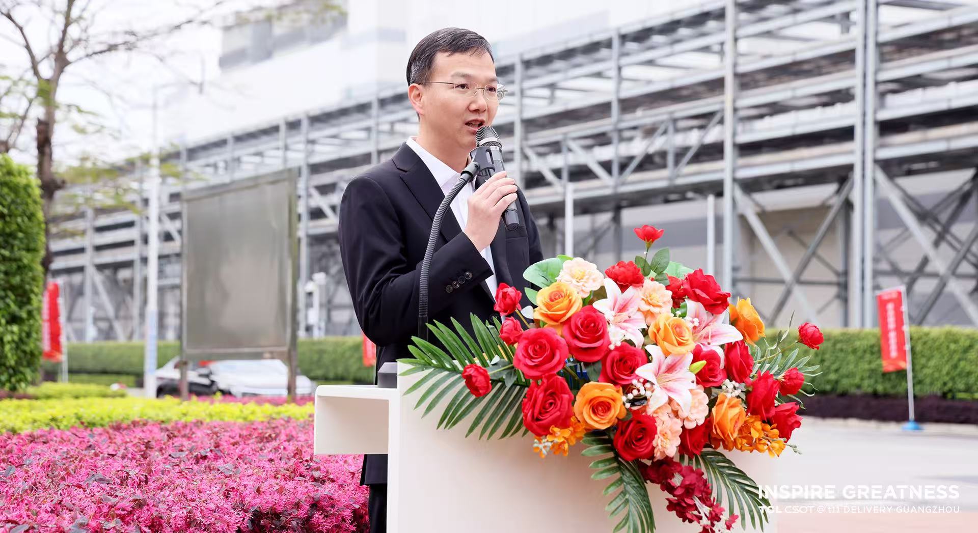 TCL华星高级副总裁张锋向参加仪式活动的领导员工发表致辞,在致辞中表示,今天的红旗升起,升起的是中国显示产业走向世界的自信,凝聚的是全球合作伙伴的信任,更承载着亿万用户对美好视觉体验的期待。全体领导员工当以此刻为起点,继续以“鹰的重生”之志革新突破,以“星辰大海”之心开拓未来,共同书写全球显示产业的中国传奇!