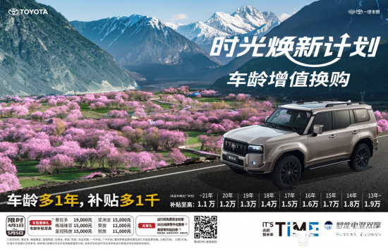 3月,一汽丰田行业首创的“时光焕新计划”开始进行。政策亮点在于首创"车龄增值补贴"机制:基础补贴随车龄每年递增 1000元,叠加国家补贴形成双重保障。以 13 年丰田用户置换皇冠陆放为例,可同步享受 15000元国补与 15000 元厂补,充分释放存量资产价值。