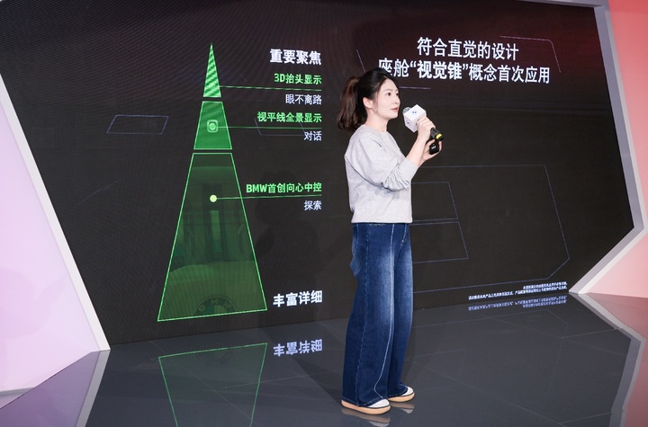 首先最重要的一点,就是全景 iDRIVE 人机交互解决方案基于一个大前提:座舱「视觉锥」概念。