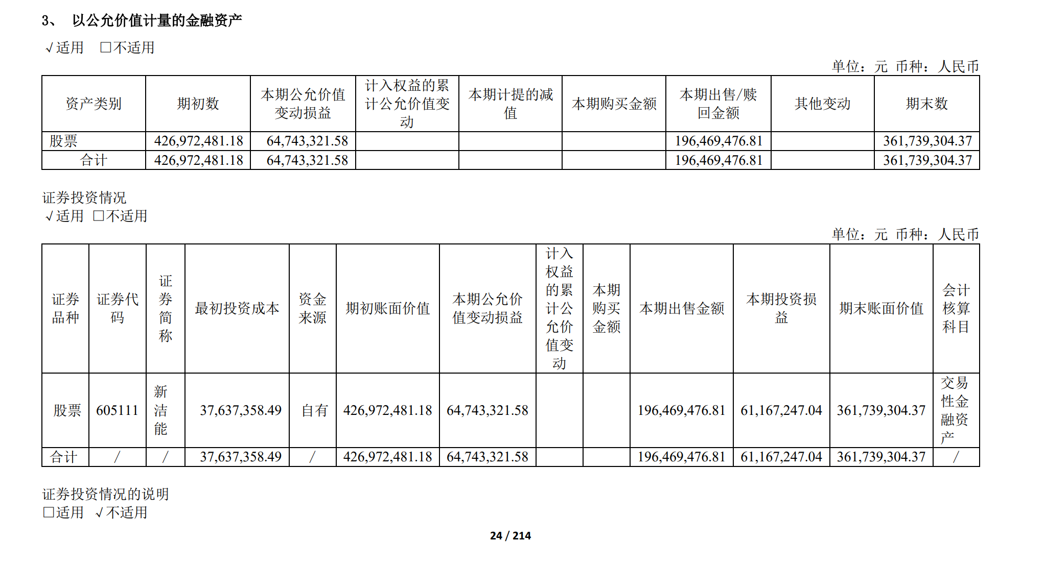年报显示,上海贝岭持有的新洁能股票本期公允价值变动损益为6474.33万元,公司2024年减持新洁能股票,本期出售金额为1.96亿元,投资损益为6116.72万元。