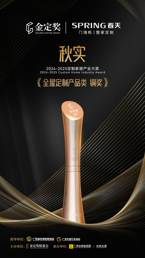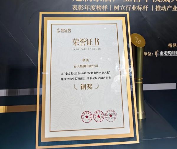 在定制家居行业备受瞩目的年度盛事——金定奖评选活动中,春天集团凭借卓越设计实力与匠心工艺再获殊荣,其倾力打造的秋实系列产品斩获铜奖。