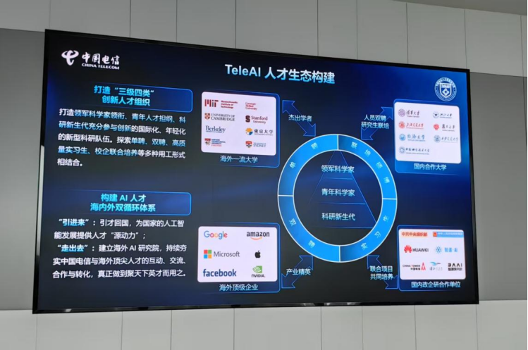 同时,TeleAI着力构建AI人才的海内外双循环体系。一方面搭建适配人才快速发展的科研平台,吸引海外人才回国,为国家人工智能产业发展提供“源动力”;另一方面扩展全球科研力量布局,加强与海内外多方的科研合作与人才培养,夯实与高层次人才的互动交流。展现出对人才的坚定追求,做到聚天下英才而用之。