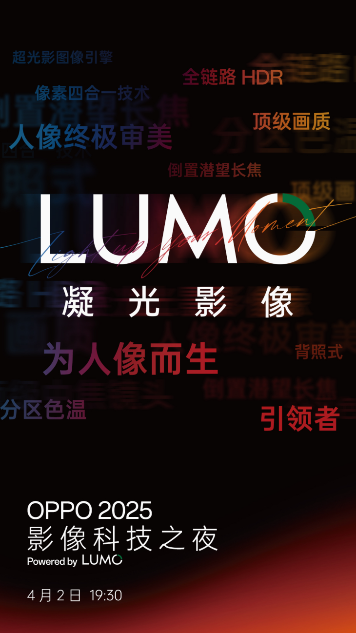 想要了解关于OPPO LUMO 凝光影像和Find X8 Ultra更多信息,敬请关注4月2日OPPO科技影像之夜,与全球用户一同见证LUMO 凝光影像的亮相。