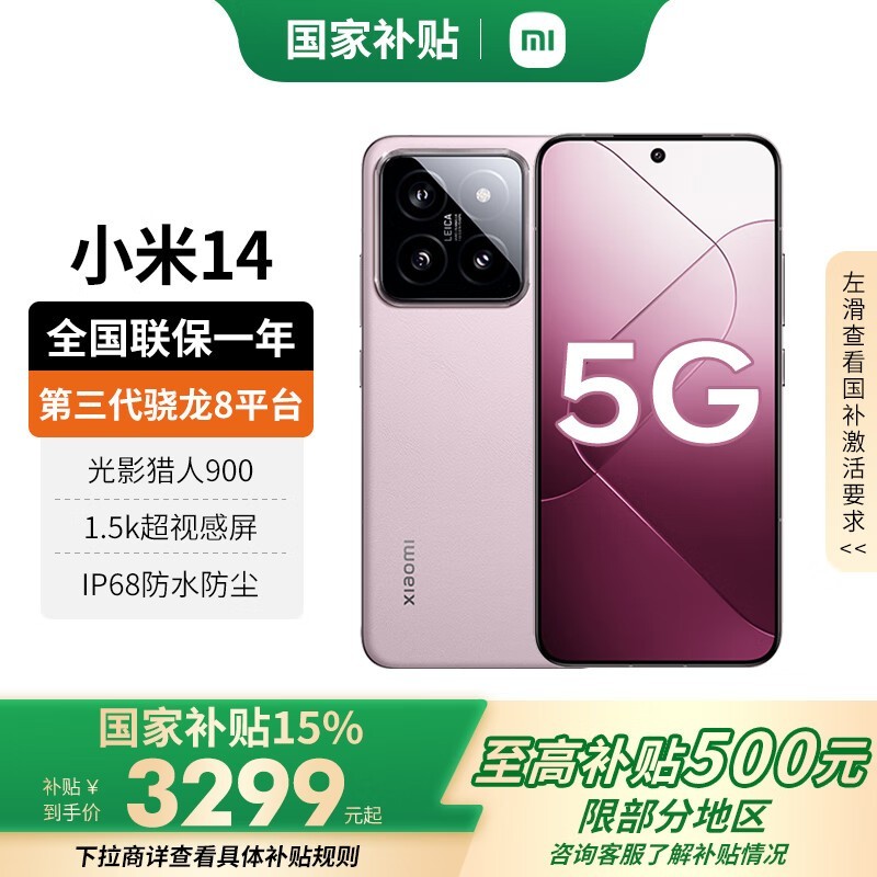 小米Xiaomi 14 5G手机雪山粉科技纳米皮轻薄时尚仅3759元