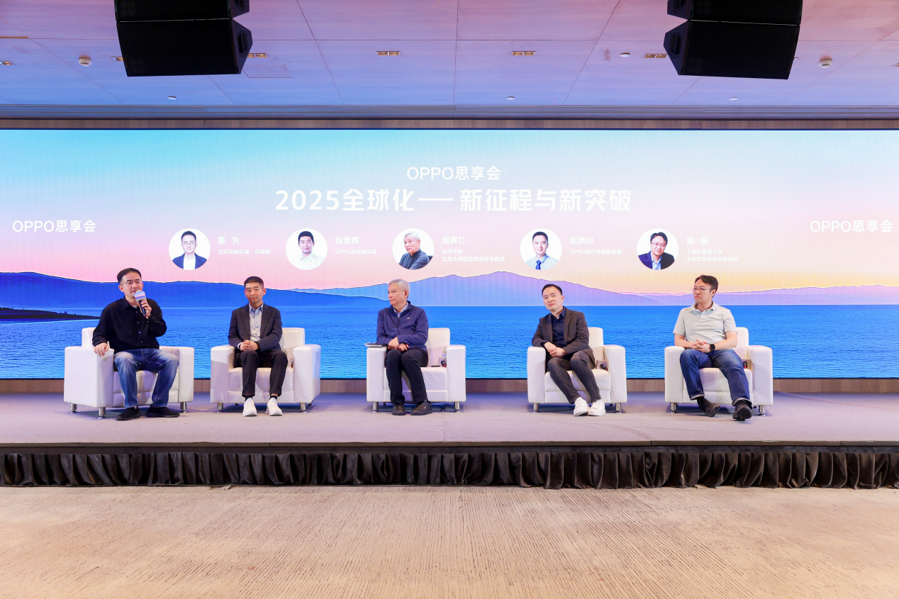 会上,经济学家、北京大学国发院经济学教授周其仁,上海外国语大学全球文明史研究所教授施展及正和岛副总裁、总编辑陈为,与OPPO高级副总裁段要辉,OPPO海外营销服总裁张洲川,围绕“2025全球化——新征程与新突破”深入探讨中国企业的出海之道,力求为中国企业全球化提供新思路。