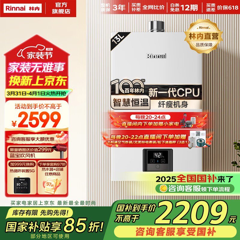林内燃气热水器JSQ26-GD31 13L强排式促销