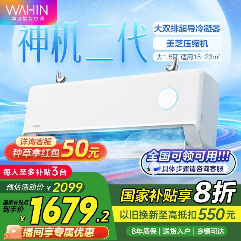 华凌1.5匹新一级能效空调神机二代仅1529元到手