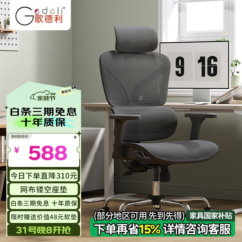 歌德利G22人体工学电脑椅(镂空黑)超值优惠