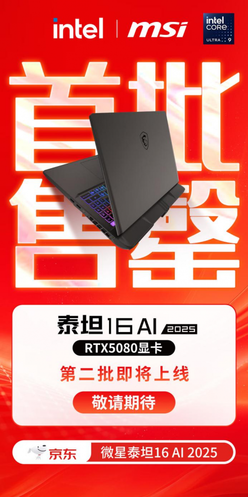 英特尔全新推出的酷睿Ultra 200HX系列处理器引发了游戏玩家们的关注,微星(MSI)搭载酷睿Ultra 200HX处理器的泰坦18 Ultra龙魂典藏版2025、泰坦18 Ultra AI 2025、泰坦18 Pro AI 2025、泰坦16 AI 2025四款新一代游戏本新品在京东先人一步开售,下单可享政府补贴20%的优惠,立省2000元。开售后,这四款笔记本的首批货量已迅速被用户抢购一空,第二批货也即将上线,想要体验微星新一代游戏本的玩家可以持续关注京东。