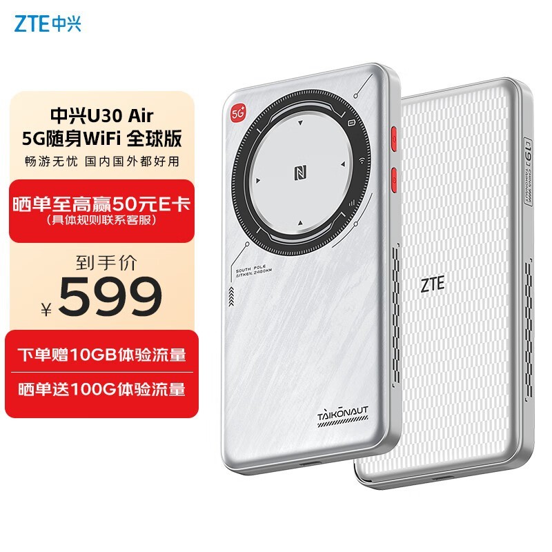 中兴U30 Air全球版5G免插卡移动随身WiFi仅519元