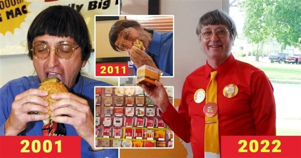其实,暂且不论汉堡是否对身体有害,单纯每天只吃一种食物,坚持50几年,这毅力可以说是无人可及。