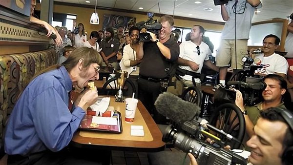 截止到2025年3月15日,他吃下了第35000个汉堡,又刷新了吉尼斯世界纪录。